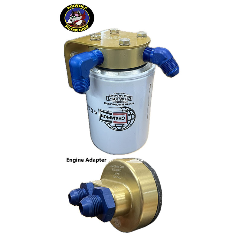 STC'd for ALL aircraft powered by O-235 through IO-720 Lycoming Engines. Perfect for tight installations in ALL aircraft manufactured by: Aviat Husky, Beech, Bellanca, Cessna, Grumman, Excalibur, Maule, Mooney, Piper, Pitts, Taylorcraft,and many others. Select Remote Oil Filter Kit by reviewing Airwolf’s application chart and corresponding installation manual. Application Chart - Lycoming Application Chart - Bell 47 Hoses & Clamps not included unless where indicated. |