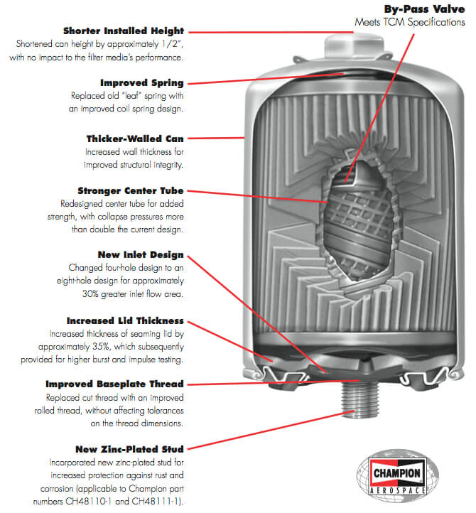 Spin-On Oil Filter CH48110-1 by Champion. Replaces oil filter element. Easy to install. Saves time and clean-up. FAA Approved.
