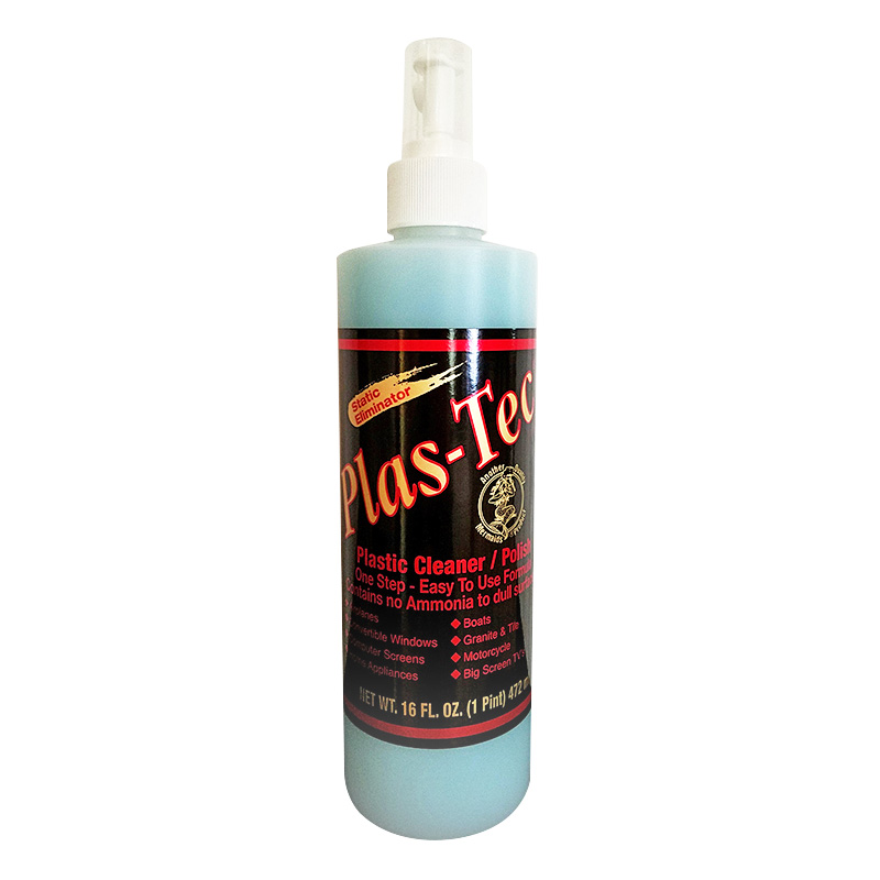 Plas-TecŪ cleans, shines, and protects todays high-tech plastics. Plas-TecŪ is a non-aggressive, optically clear cleaner that lifts fingerprints and smudges, leaving a protective, anti-static coating that resests dirt build-up. Plas-TecŪ is excellent for use on acrylic sheet, Lexan windshields and windows as well as aircraft instrument panels. Also an effective cleaner for computer screens, scanners, copiers, laptops, phones, TV and video equipment, dashboards, snowmobiles, golf carts, soft top windows, convertible car tops, goggles, sunglasses, and many other applications.