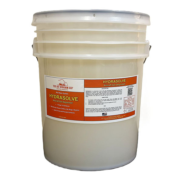 Hydrasolve is a thickened, heavy duty gel degreaser formulated for heavy duty degreasing on carbon, oil, bugs, and Skydrol on aircraft exteriors. Hydrasolve is designed to cling to surfaces being cleaned, which prolongs dwell time and allows Hydrasolve to fully dissolve most all heavy surface contaminants. Hydrasolve is not recommended to be used as an all-over wet wash product like Jet Stream’s Safety Wash.