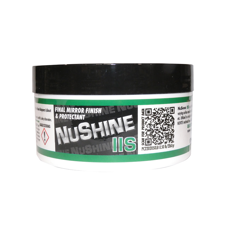 Nuvite engineers have formulated a system of polishes to meet the needs for almost any metal and paint polishing project. New metal to antique, the formulations in the NuShine II Polishing System will give superior definition, highlights, imagery, clarity, and will retain the finish longer than normal polishes. Nuvite’s NuShine II graded polishes use high technology materials with programmed abrasive characteristics and are blended with superior carriers to offer the ability to produce cutting action when needed, yet offer micron-level finishing in the finer grades that produces highest reflectance and image excellence. |