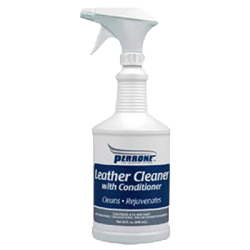 Perrone's Leather Cleaner / Conditioner is a premium blend of gentle cleansers and light conditioners formulated to clean and rejuvenate finished leather, vinyl, and plastic surfaces. Perrone's Leather Cleaner/ Conditioner removes dirt, dust, and oils without drying or damaging the surface. Perrone's Leather Cleaner/ Conditioner helps protect leather from weathering and fading. Leaves leather surfaces soft, supple and smelling like new again. Perrone Leather Cleaning/ Conditioning products create an invisible barrier between leather seat covers and soils. This quick, convienient, and cost effective method of reducing ink stains, dirt, grease, grime, and body oils from penetrating leather surfaces will add to the longevity and appearance of your aviation leather interior without any adverse effects on flammability. Available in 32 oz. with trigger spray and 1 gallon refill. |