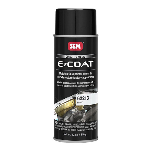 EZ COAT is a direct to metal coating designed to match the color and gloss of factory primer and e-coat colors. It is a quick and easy way to touch up the engine compartments, support rails and trunk areas. Available in six colors: Black, Olive Green, Light Green, Gray, Tan, Olive Brown. 12 Oz Aerosol Cans |