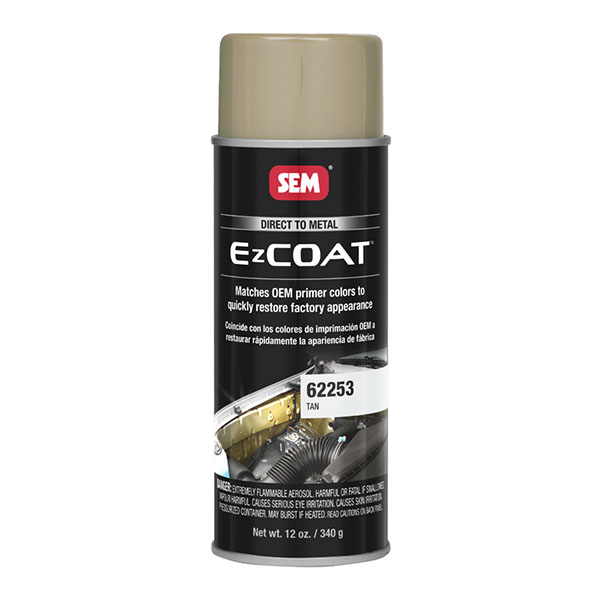 EZ COAT is a direct to metal coating designed to match the color and gloss of factory primer and e-coat colors. It is a quick and easy way to touch up the engine compartments, support rails and trunk areas. Available in six colors: Black, Olive Green, Light Green, Gray, Tan, Olive Brown. 12 Oz Aerosol Cans |