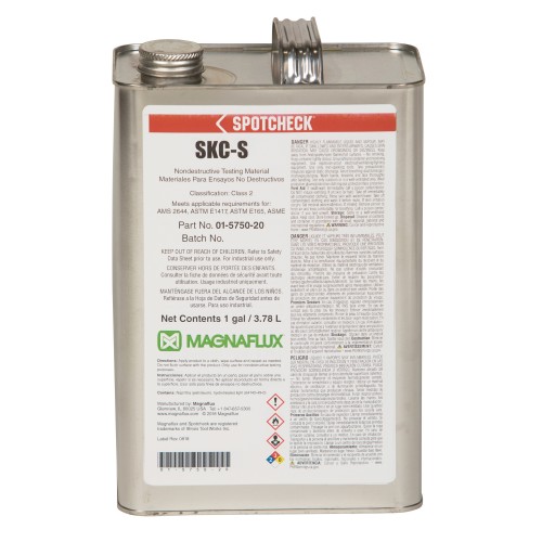 SKC-S is an NDT-approved solvent cleaner/remover for pre-cleaning before non-destructive testing and for removing excess surface penetrant from an inspection area before applying developer during liquid penetrant testing.