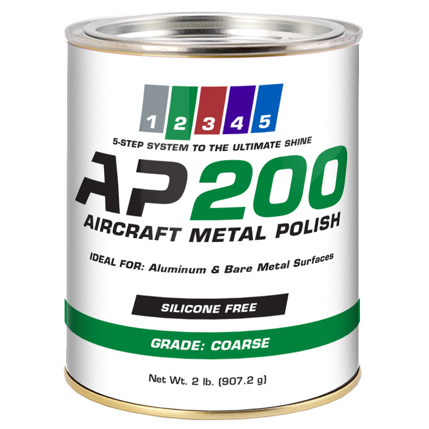 Directions: Some settling may occur during shipping, stir before using. For best results, apply 1 teaspoon of AP200 Aircraft Metal Polish to Aluminum (Clad or Mil grade) and bare metal surfaces with a clean, dry microfiber cloth – do not use water. When using an electric buffer, use a clean, soft, free of dust buffing pad. Work one 4-5 sq. ft. section at a time. Apply as needed. For maximum shine, buff off immediately while AP200 Aircraft Metal Polish is still moist – do not let dry. Minimum slinging formula. Product sold by weight not volume. Follow up with AP300 Aircraft Metal Polish.