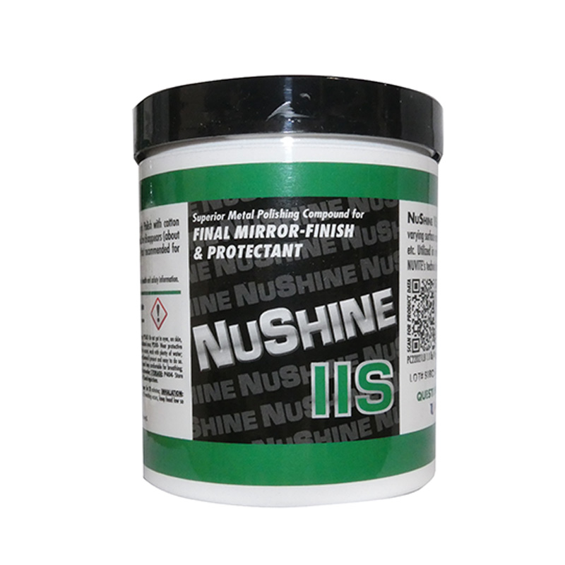 Nuvite engineers have formulated a system of polishes to meet the needs for almost any metal and paint polishing project. New metal to antique, the formulations in the NuShine II Polishing System will give superior definition, highlights, imagery, clarity, and will retain the finish longer than normal polishes. Nuvite’s NuShine II graded polishes use high technology materials with programmed abrasive characteristics and are blended with superior carriers to offer the ability to produce cutting action when needed, yet offer micron-level finishing in the finer grades that produces highest reflectance and image excellence. |