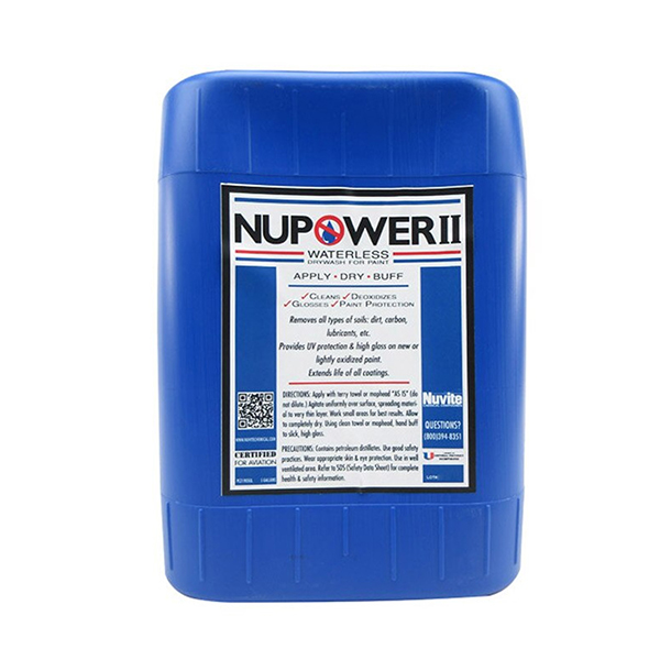 | NuVite NuPower II is used for routine dry wash cleaning with gloss enhancement and UV protectant barrier. This is the easiest in-place dry wash clean and polish -with U/V protectant you've ever used! Cleans great and brightens paint colors by removing light oxidation, and leaves the shiniest and slickest surface you ever saw. Bugs almost fall off, and dirt won't stick like it did before. Cleans dirt, carbon and oil and leaves a protective barrier against UV deterioration of paint. Can also be used to clean non-polished bare metal surfaces. |