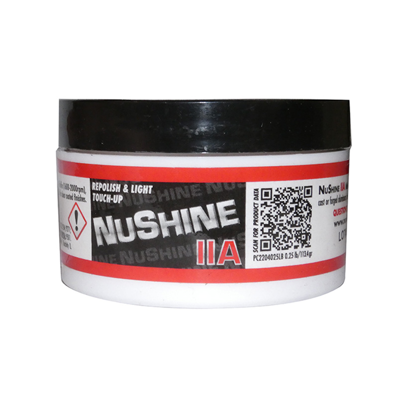 Nuvite engineers have formulated a system of polishes to meet the needs for almost any metal and paint polishing project. New metal to antique, the formulations in the NuShine II Polishing System will give superior definition, highlights, imagery, clarity, and will retain the finish longer than normal polishes. Nuvite’s NuShine II graded polishes use high technology materials with programmed abrasive characteristics and are blended with superior carriers to offer the ability to produce cutting action when needed, yet offer micron-level finishing in the finer grades that produces highest reflectance and image excellence. |