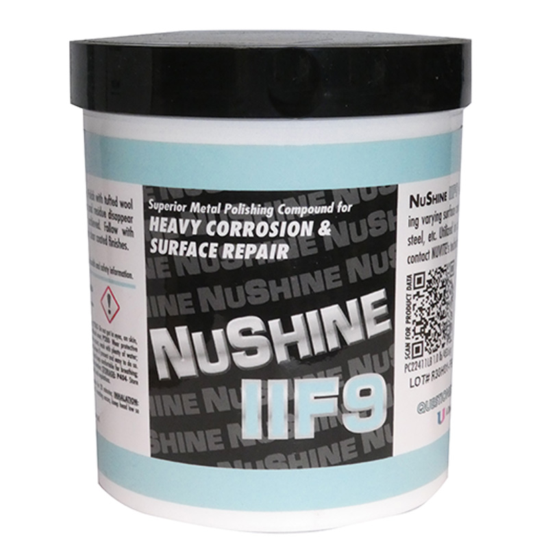 Nuvite engineers have formulated a system of polishes to meet the needs for almost any metal and paint polishing project. New metal to antique, the formulations in the NuShine II Polishing System will give superior definition, highlights, imagery, clarity, and will retain the finish longer than normal polishes. Nuvite’s NuShine II graded polishes use high technology materials with programmed abrasive characteristics and are blended with superior carriers to offer the ability to produce cutting action when needed, yet offer micron-level finishing in the finer grades that produces highest reflectance and image excellence. |