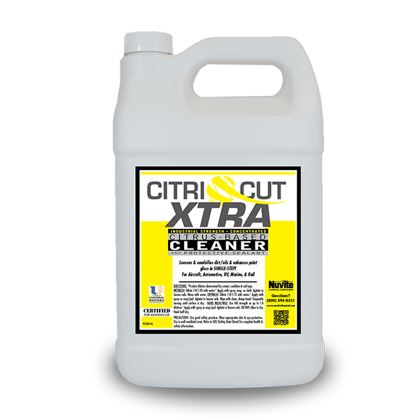 | Industrial strength, concentrated citrus-based cleaner and sealant. Loosens and emulsifies dirt/oils and enhances paint gloss in single step. Can be used as a dry wash, hand wax, sealant and cleaner for Aircraft, Automotive, RV, Marine and Rail. |
