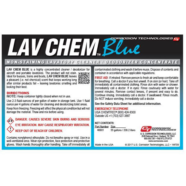 | Lav Chem Blue/Clear is a highly concentrated lavatory cleaner and deodorizer for aircraft and portable lavatories / toilets. Ideal for buses, trains and boats, Lav Chem Blue/Clear leaves a pleasant (i.e. not chemical) scent that keeps working long after similar products fail – leaving lavatories smelling and looking their best. |