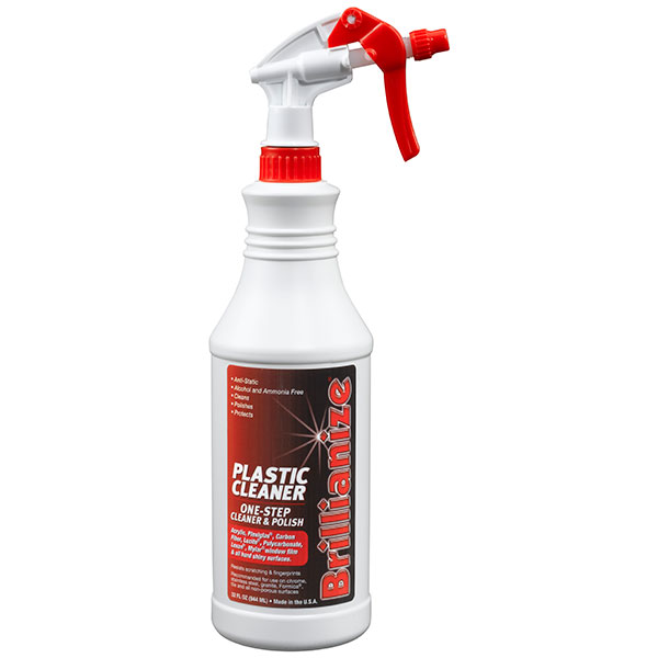 Brillianize makes shiny surfaces brilliant. The cleaned surface resists finger marking, has anti-static properties, repels dust. It is a nonflammable and nontoxic liquid. Use it to clean acrylic sheet, Lexan, mirrors, chrome - any shiny surface. Apply and polish with Kleenmaster shop towels.