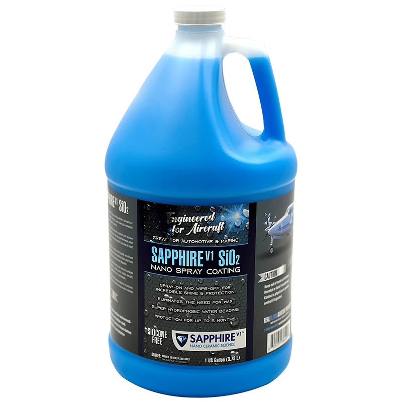 Simply spray on a clean and dry surface, spread, and remove with a folded microfiber cloth; for best performance, paint should be clean and free of contaminants. Sapphire SiO2 ceramic spray coating adds a brilliant mirror-like shine that enhances the depth of color and finish by reducing water spots and contaminant deposits. Can be used in direct sunlight and on all exterior surfaces, including paint, composite, metal, plastic, windscreens, glass, gel coat, trim, and wheels. Safe for fabric aircraft. Use Sapphire SiO2 as a stand-alone product or in conjunction with other protective coatings as a top coat or refresh for ceramic-coated aircraft, vehicles, and watercraft. |
