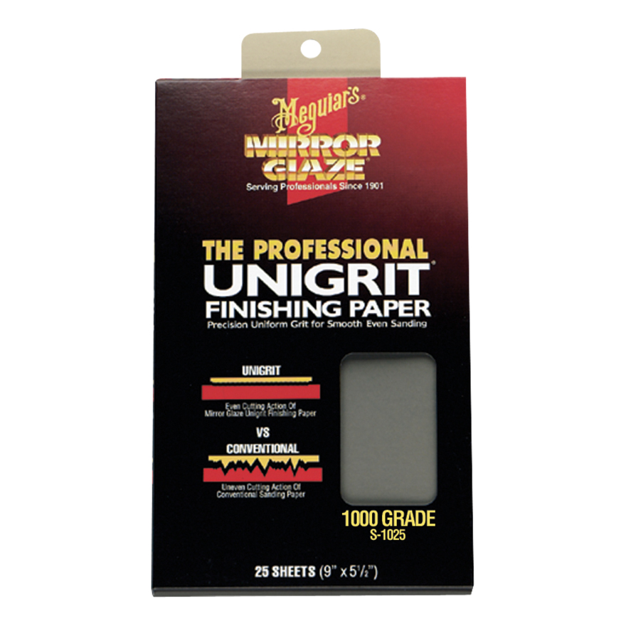 Meguiars Unigrit™ Finishing Papers use precise, uniform grit particles to eliminate deep sanding scratches and the need for compounds. They are more economical to use because they work faster, last longer & won't load up as quickly as conventional sanding products.
