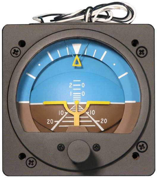 The RCA22 Series of vacuum artificial horizon are controlled by air driven precision gyros to present the pilot with pitch and roll information. The attractive color scheme of blue sky and brown ground presents a realistic spherical display of flight. Unless otherwise indicated all instruments have a dark blue/brown display, fixed pointer and are unlighted. This is the "standard" display.
