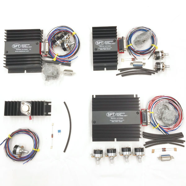Economical solution for the dimming of aircraft interior lighting. These heavy-duty solid state dimmers by Superior Panel Technology includes all necessary potentiometers with built-in off switch and 115W power transistors mounted to a heat sink. The supplied colored Mil Spec wire and very easy to follow wiring diagram allows the aircraft builder to customize the wiring harness to fit individual needs. A solid state dimmer provides the most uniform dimming if you are dimming a combination of LEDs, incandescent bulbs and electroluminescent lamps on the same circuit (such as SPT’s Glow Strips, FiberLites, and LED glare shield light strip). They are rated for 2 amps per circuit, and the multi-circuit dimmers allow for two discrete power inputs (One for circuit one, and one for remaining circuits). Appropriate for both 14V and 28V systems.
