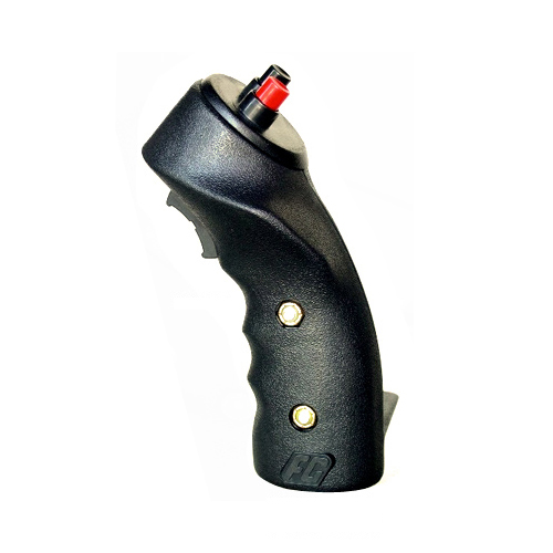 The Model #2 grip provides for control of two functions using the rocker trigger switch. The trigger switch features momentary contact either side of center, with spring return to center OFF action. The Model #4 grip is the same as the Model #2, but adds two push-button switches for thumb activation in the top cap of the grip. The switch mounted closest to the thumb rest is a latching type (push on – push off), and the remaining switch is a momentary type. Left hand grips are available with all the same switch options. Grips are designed to fit 1-1/8” OD control sticks and adapter bushings are available to adapt to 1”, 7/8” and 3/4” OD control sticks. |