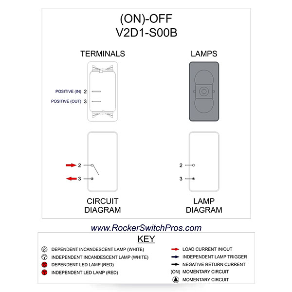 | -- | V2D1-S00B | (On)-Off White Light | SPST | 11-15085 |