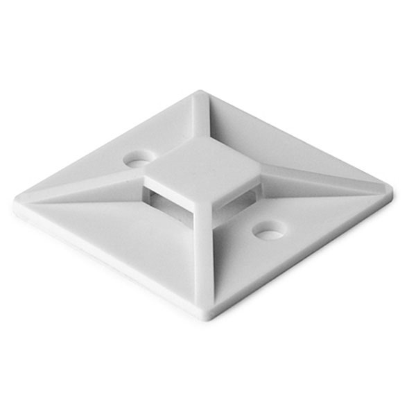 | Hellermann Tyton Adhesive Cable Tie Mounting Bases are used with T18 through T150 Series cable ties to provide stability when securing bundles. The mounts are installed using the adhesive backing and/or by securing two or four screws. The 4-way opening allows the cable ties to be inserted parallel or perpendicular to the wire bundles. Rubber-based adhesive allows for a permanent bond to most surfaces. |