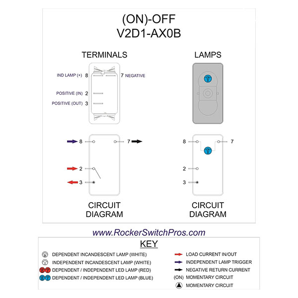 | -- | V2D1-AW0B | (On)-Off Ind White | SPST | 11-18722 |