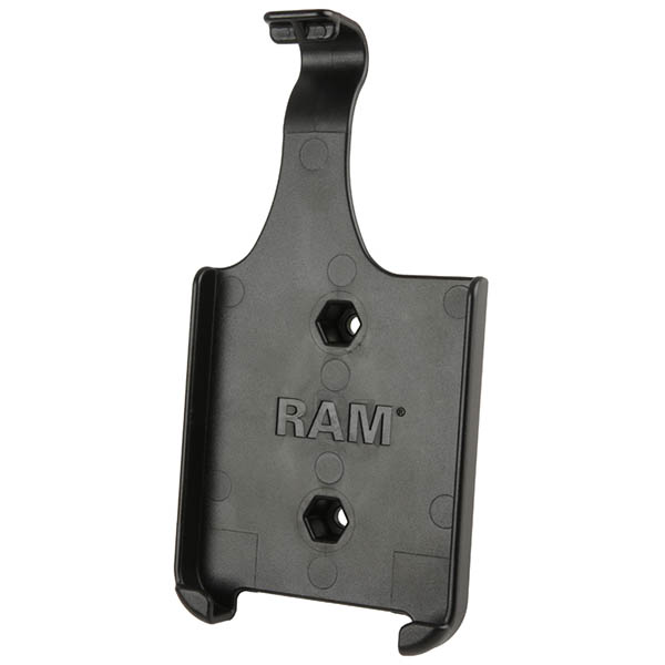 | This high-strength composite, form-fit cradle was designed specifically for the Apple iPhone 12 & 12 Pro. Allowing for easy one-handed docking and removal of your iPhone 12/12 Pro, all buttons, cameras, ports, and speakers remain exposed and accessible. The 2-hole AMPS pattern on the back of the cradle and included hardware allows for the attachment of a RAMŽ diamond ball base  compatible with a wide range of additional RAMŽ components. |