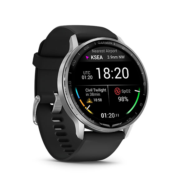 Garmin D2 Air X15 Aviator GPS Smartwatch - Silver Bezel - Black Silicone Band 010-03014-50