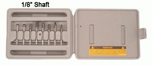 8 Piece Carbide Rotary File Set. 1/4" or 1/8" shaft available. |