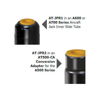 Made of solid steel and powder-coated with a long-lasting yellow finish for easy spotting, these JPR Receivers have been designed to be put into the top of an A600 or A700 Series Aircraft Jack's Inner Slide Tube, an AT-EBnnn Extension Bar or the AT500-CA Conversion Adapter for the A500 Series. The AT-JPR1 is a 1.5" x .187" (38x5mm) pad with a .875" (22mm) round Jacking Point receiving socket. The AT-JPR2 is a little larger with a 1.75" x .375" (44x10mm) pad with a 1.25" (32mm) round receiving socket. Both have a 1" x 1" (25.25mm) round stem. |