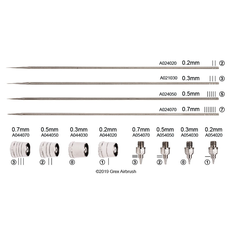 Convert your Tritium, Genesis.XGi, and XSi airbrushes to a 0.5mm or 0.7mm nozzle size or use as regular replacement parts.