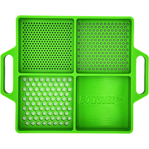 • Additionally, the Boltster Tray has one quadrant without an organizing pattern which is a dedicated “catch-all” area. Any loose nuts, bolts, screws, wrenches, etc. can all be held securely here. Most tool trays on the market have a 25mm sidewall height. Boltster offers a 35mm, which is one of the best in its class. Almost nothing will roll out of this tray!