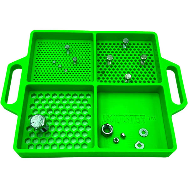 The premise is simple. Our Boltster Tray solves the problem of misplaced bolts and fasteners. This means no more cups of bolts or sandwich bags labeled with all your fasteners. No more guess work when reassembling a project. No more cardboard bolt diagrams. No more time wasted or anxiety from misplacing the fasteners you need!