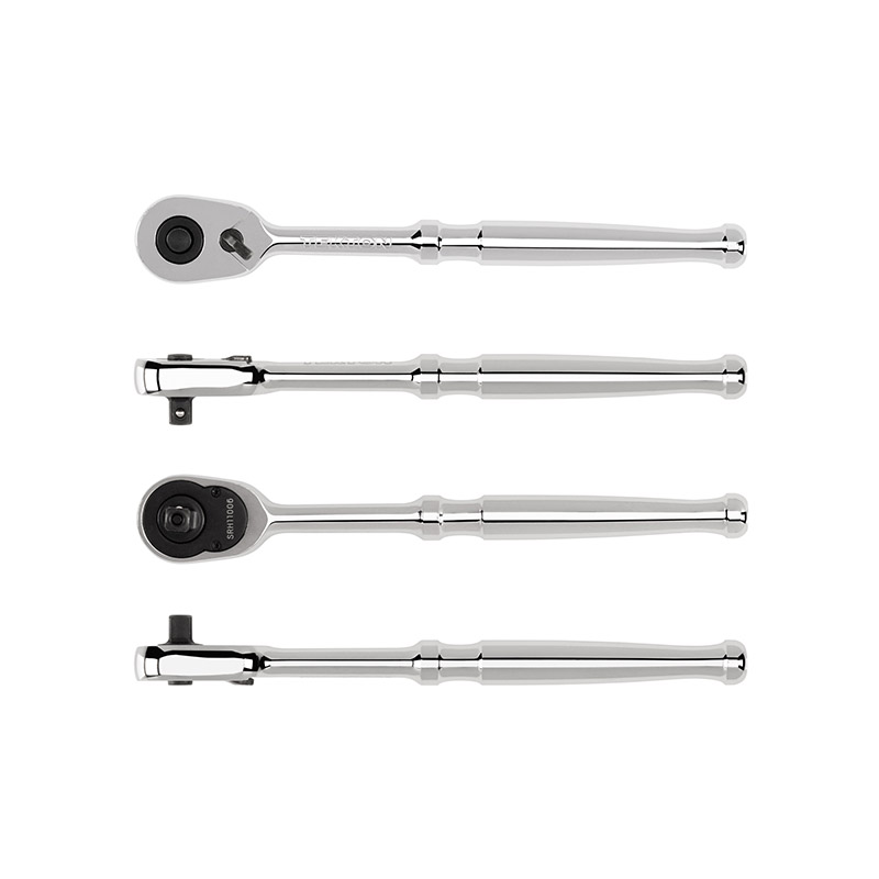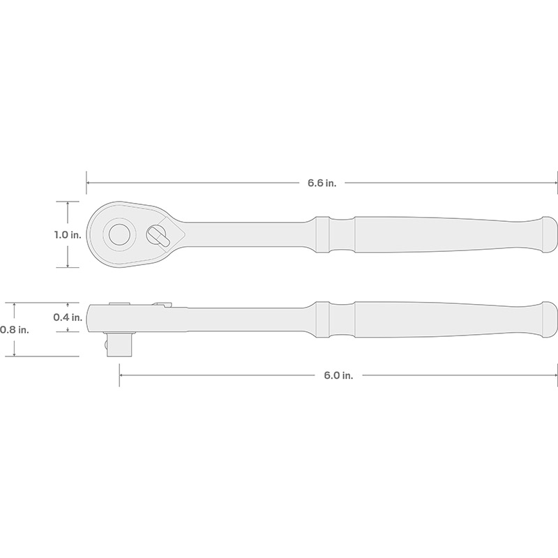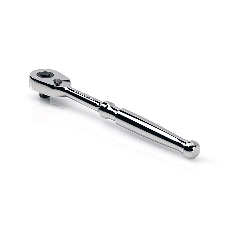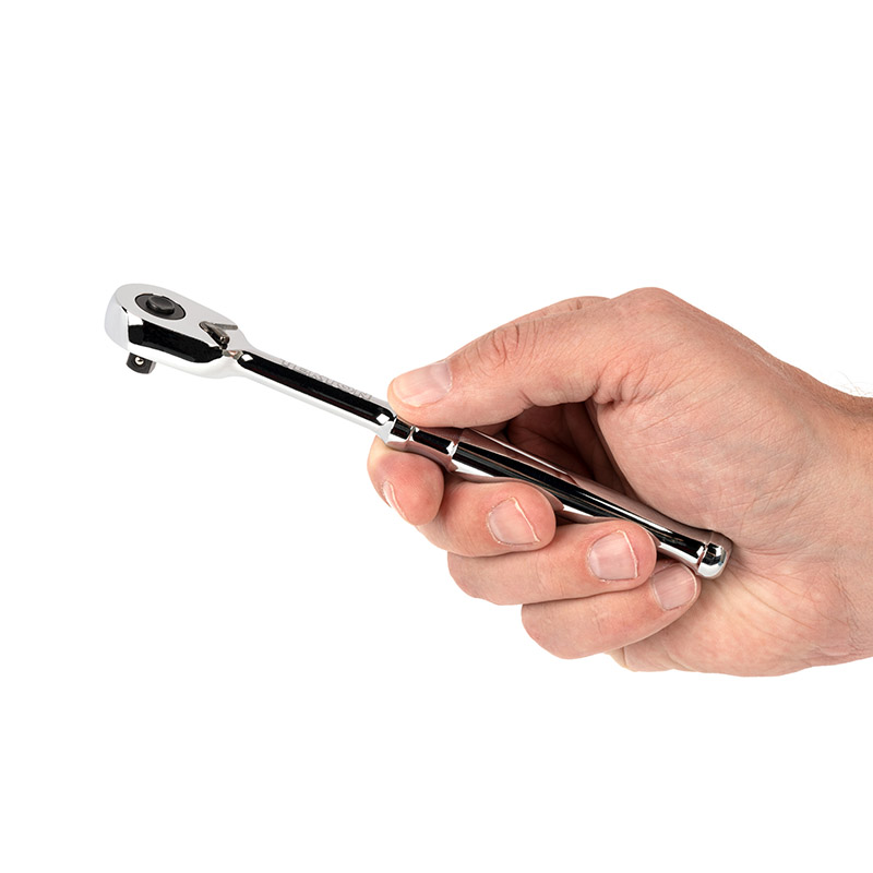 90-Tooth Gear = 4º Swing Arc The single half-moon pawl maintains 9 teeth engaged with the gear at all times, ensuring that it won't slip or skip under stress. Ultra-Compact Head Unlike conventional "low profile" designs that focus on controlling only the thickness of the head, we reduced the size in every dimension: height, width, and length. ![]() Proof Torque Our ratchets meet (and most far exceed) the industry standard for Proof Torque, a measure of strength verified by a single-cycle test that applies torque until the specified value is reached without failure or any permanent deformation. Data from: “Category 10, Type 1, Class 2 Handles, Ratchet, Reversible.” ASME B107.110-2019. ![]() Working Handle Length We name our ratchets and breaker bars according to their effective working length, which is measured from the center of the drive tang to the end of the handle. ![]() Sleek, Comfortable Handle The finger groove has pronounced interior edges for traction and control for any finger placement. The pommel at the end of the handle keeps your hand from slipping off and is rounded for comfort. ![]() Parts and Assembly ![]() |