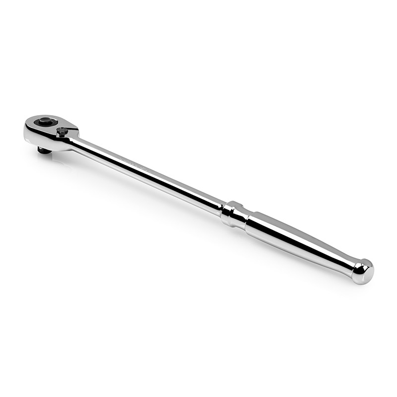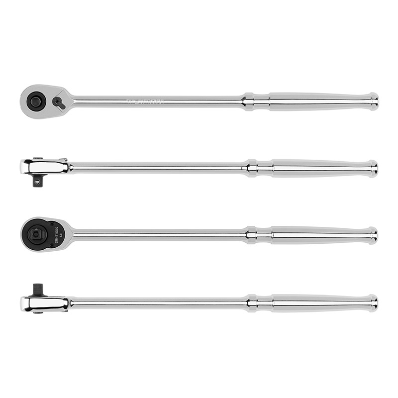 90-Tooth Gear = 4º Swing Arc The single half-moon pawl maintains 9 teeth engaged with the gear at all times, ensuring that it won't slip or skip under stress. Ultra-Compact Head Unlike conventional "low profile" designs that focus on controlling only the thickness of the head, we reduced the size in every dimension: height, width, and length. ![]() Proof Torque Our ratchets meet (and most far exceed) the industry standard for Proof Torque, a measure of strength verified by a single-cycle test that applies torque until the specified value is reached without failure or any permanent deformation. Data from: “Category 10, Type 1, Class 2 Handles, Ratchet, Reversible.” ASME B107.110-2019. ![]() Working Handle Length We name our ratchets and breaker bars according to their effective working length, which is measured from the center of the drive tang to the end of the handle. ![]() Sleek, Comfortable Handle The finger groove has pronounced interior edges for traction and control for any finger placement. The pommel at the end of the handle keeps your hand from slipping off and is rounded for comfort. ![]() Parts and Assembly ![]() |