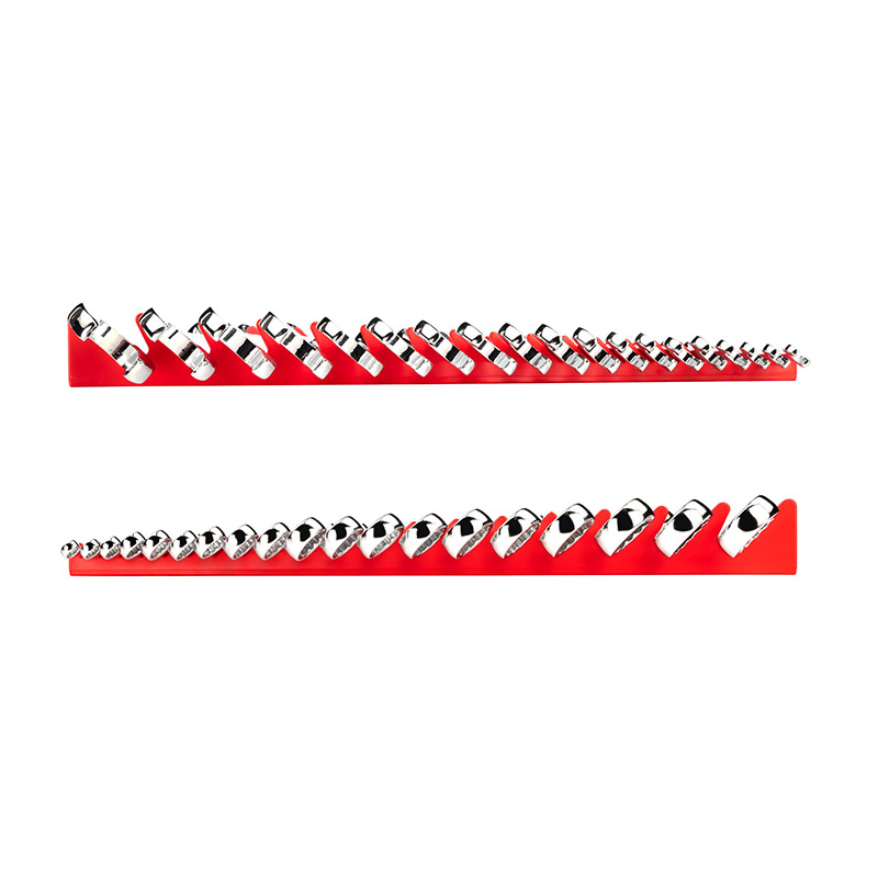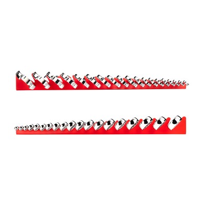 Angled Open End To reduce the working swing arc in tight spaces, the open end is angled 15 degrees so the wrench can be flipped over with each rotation to engage the fastener twice as often. ![]() 12-Point Box End A 12-point box end doubles the available access angles, as compared to a 6-point end. In order to prevent rounding off fasteners, the box end is designed to contact and apply force to the sides of a fastener head and not the corners. ![]() Offset Box End The box end is offset 15 degrees, creating clearance for your fingers and making it easier to reach around obstructions. ![]() Storage FeaturesQuick-Access Wrench SlotsThe wrenches rest in slots, making it easy to take the tools in and out without resistance. ![]() Fits in 2-Inch Drawers The low-profile wrench rack fits into most shallow tool cabinet drawers. ![]() |