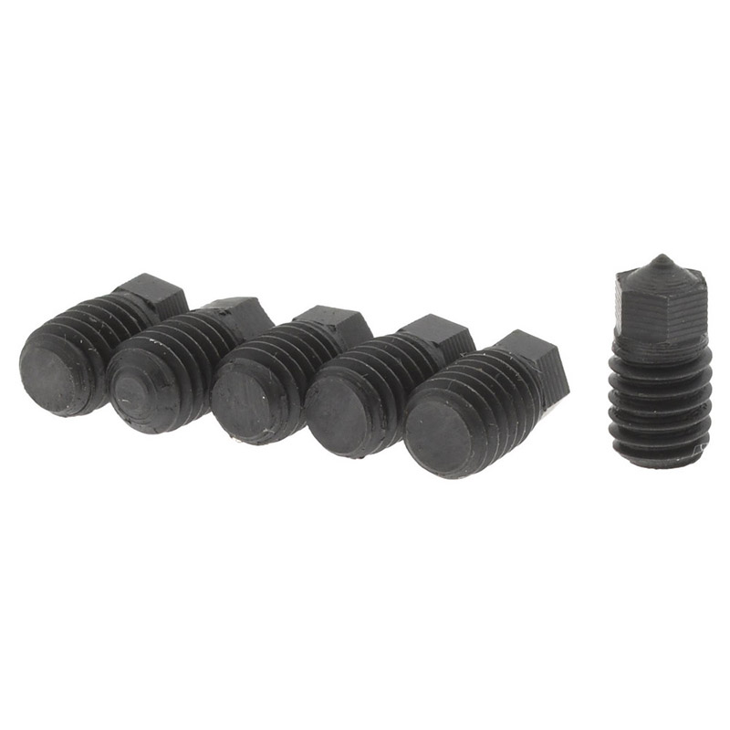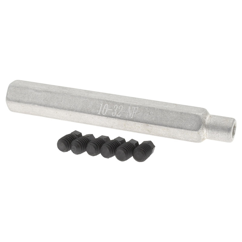Ideal for use in layout, tool and die work; also can be used for locating fixtures, air cylinders, chucks, and general repairs. Aids in locating the die in proper relation to the punch on commercial die sets. Black oxide surface treatment. Hardness 48~52HRC. Complete set consists of four or six hardened hardened screws nested in a combined holder and wrench. |