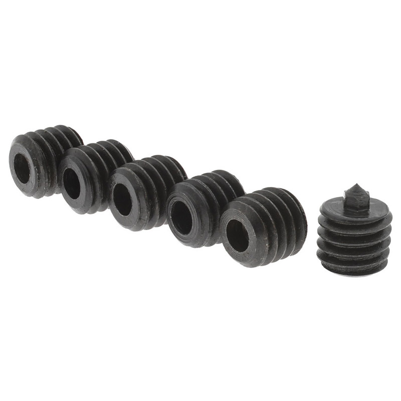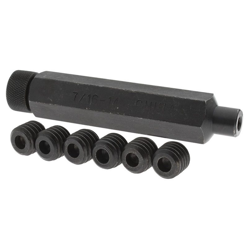 Ideal for use in layout, tool and die work; also can be used for locating fixtures, air cylinders, chucks, and general repairs. Aids in locating the die in proper relation to the punch on commercial die sets. Black oxide surface treatment. Hardness 48~52HRC. Complete set consists of four or six hardened hardened screws nested in a combined holder and wrench. |