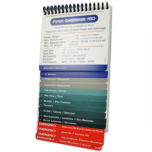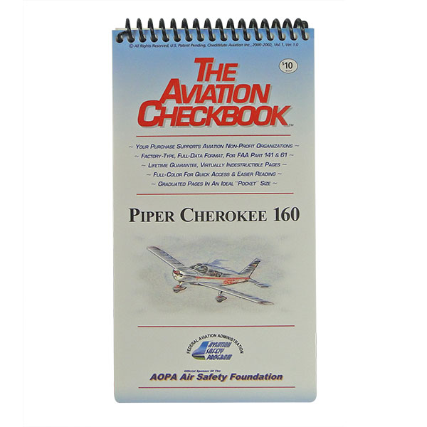 Aviation Checkbook is a high quality, multi-page laminated checklist utilizing factory type information for FAA Part 141 and 61 schools. Designed as a primary checklist giving all details and responses needed by new students or pilots wanting a multi-page checklist without the usual bulk. Shirt pocket size with mark and erase surface for notes. The various checklists for your aircraft are stacked and color tabs allow you to locate the checklist you need.