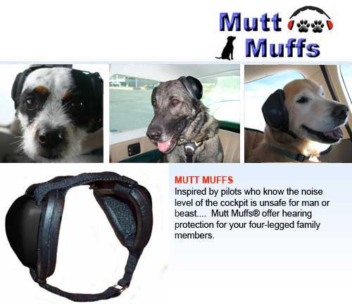 The inner foam that we use is the exact same ester resin foam that is used in many high end commercial head sets designed for humans. Based on the materials used, the estimated decibel reduction is between 21 and 24, assuming proper fit and a good seal against your pup's head. That's 21-24 dB reduction in the human hearing range of 20,000 cycles per second, which is the only range that we have data for. Our canine friends can hear much higher frequencies (in the range of 43,000 cycles per second). As the frequency goes up, so does the effectiveness of Mutt Muffs, simply because the higher the frequency is, the more easily it is absorbed. Therefore, Mutt Muffs are especially effective at protecting against the high frequency wind whistles and shrieks we humans cannot even hear. There is another factor that comes into play as well. The dog's own ear flaps are down and covering the ear canal, providing yet another layer of protection, better even than placing your hands over your own ears. Mutt Muffs are designed not to block out all sound, but to be a passive, noise reducing device that will make a ride in the airplane a comfortable experience for your mutt. |