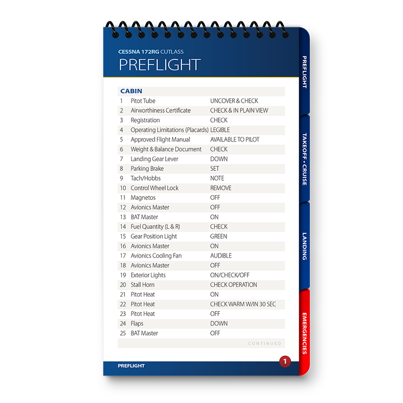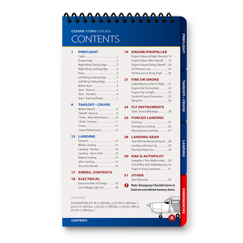 Qref BooksTopics Covered: Preflight, Takeoff/Cruise, Landing, Comprehensive Abnormals and Emergencies, V-speed list, cruise performance chart Get the most accurate, reliable aircraft checklist on the market with a Qref checklist. The procedures cover every aspect of flight, from preflight through takeoff, cruise, landing, and a comprehensive emergencies/abnormals section. Emergencies are arranged by system, meaning no more digging through pages to find the right section. Qref’s trademark is creating checklists that are easy for pilots to use. A major difference in aircraft checklists between Qref and others is the level of experience and expertise that go into every procedure. The Qref team of Master CFIs have over four decades of combined active flight instruction and flying experience at all levels of industry, with instruction and flight time in this aircraft. Further, they have taken advantage of the past 20 years of checklist design research. Qref’s team incorporates industry-best practices into these checklists and forthcoming publications. They not only create checklists, they use them in daily instruction and flying. Qref checklist design features a larger, more readable font, comprehensive procedures sectioned into tabs loaded with useful reference and conversions, and non-glare laminated pages. A complete table of contents makes finding the exact procedure quick. Find out for yourself why Qref aircraft checklists are fast becoming the Gold Standard in aviation. Qref CardsTopics Covered: Preflight, Takeoff/Cruise, Landing, Abnormals and Emergencies, V-speed list 2-card set: one for standard procedures, one for abnormals and emergencies. Q'Cards are designed for pilots who are already familiar with the aircraft but need an everyday checklist to keep relevant procedures at their fingertips. 5" x 9" (12.7 cm x 22.8 cm), the prefect size to fit on a yoke mount or kneeboard. Indestructible proprietary 10-mil laminate with non-glare, UV protective treatment means these checklists will withstand years of use. No other checklist has this! A major difference in aircraft checklists between Qref and others is the level of experience and expertise that go into every procedure. The Qref team of Master CFIs have over four decades of combined active flight instruction and flying experience at all levels of industry, with instruction and flight time in this aircraft. Further, they have taken advantage of the past 20 years of checklist design research. Qref’s team incorporates industry-best practices into these checklists and forthcoming publications. They not only create checklists, they use them in daily instruction and flying. Find out for yourself why Qref aircraft checklists are fast becoming the Gold Standard in aviation. |