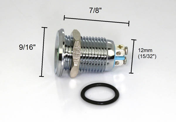 Screw-in terminals, easy retrofit installation. 12mm 12V LED, dimmable, no resistor required. Model: Pilot-12mm-Series |