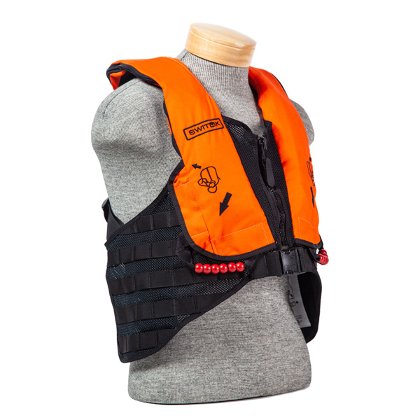 The new interior cell folding technique combined with our open V-Neck design allows the Aviator to lay over your shoulders relieving the pressure on your neck during those long flights. We have located our new beaded handle in the center of the vest allowing for an easier approach for deployment. The breakaway safety feature eliminates the risk of snagging. The red handle also offers the best visibility in low light conditions. The Switlik Zipper closure keeps your inflatable vest secure at all times. The simple reliable dual breakaway design provides immediate inflation when activated. Backup oral inflation tubes are conveniently located on either side of the vest and easily reached through the side access flaps. |