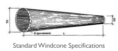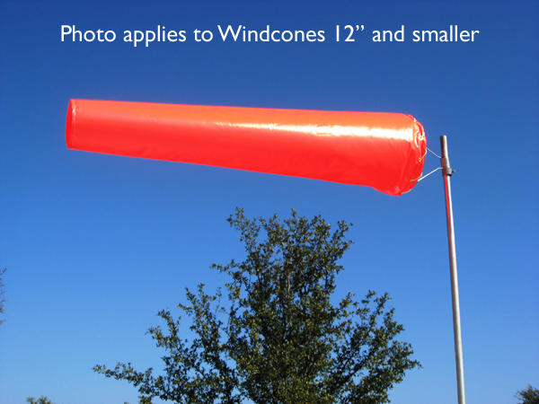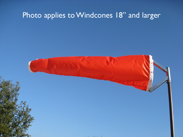 Windcones come in 3 different materials, Vinyl, Nylon or Cotton Duck. The standard color for all windcones is International Orange. Windcone Material: Vinyl - This material is heavy duty and works well in coastal environments. We use vinyl coated polyester that does not delaminate as laminated vinyls can. This material is oxidation resistant. Windcones 12" and smaller are made of 7 oz. vinyl. All other windcones are made of 9 oz. vinyl. Nylon - This is a light weight (6 oz.), easily inflatable material that is UV coated. Cotton Duck - A heavy duty (9 oz.) cotton army duck which is water repellent and mildew resistant |