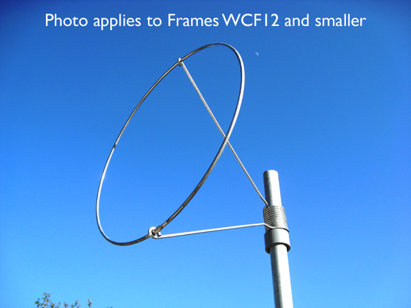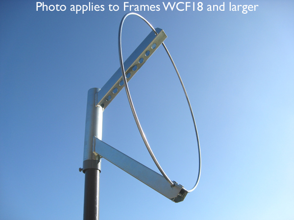 Small Frames (12" and smaller) - Light-weight frames made of galvanized steel wire. Large Frames (18" and larger) - These are heavy duty frames designed to withstand storm force winds and harsh environmental conditions. Large frames are made of galvanized steel (WCF18) or a combination of steel and cast aluminum (WCF20, WCF22, WCF24). Fits over any pole that has an outer dia of less than 1" and is powder coated steel. Made in U.S.A. |