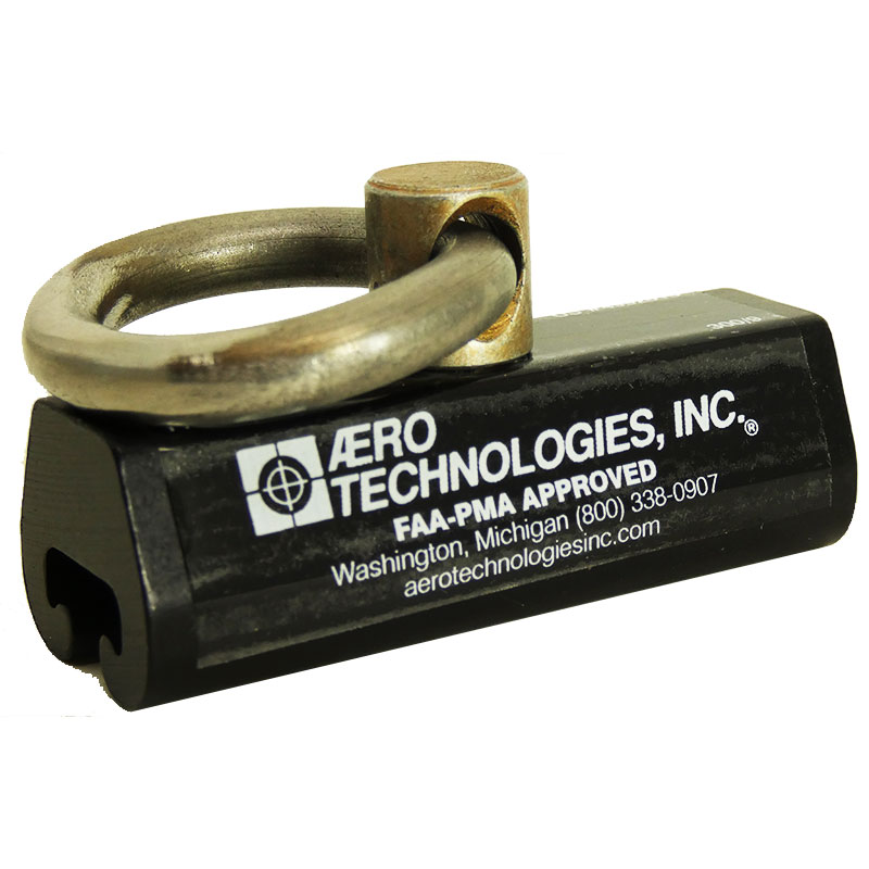 Note: Priced and sold individually. A series of anchors specially designed for “T” type tracks. FAA-PMA approved to fit most G.A. aircraft seat rails. Quality constructed from solid aluminum alloy anodized per MIL-A-8625 and permanently fitted with a stainless threaded sleeve and welded stainless steel ring with heat treated steel alloy stud. Stud is X-ray inspected and Ring weld is dye penetrant inspected for maximum strength. No tools required as all units install in seconds by hand as stud mates with existing holes in seat track. Provides secure mounting for cargo, nets, bicycles, motor vehicles, outboard motors and even pet restraints. Breaking strength is 10 X static rated load capacity. |
