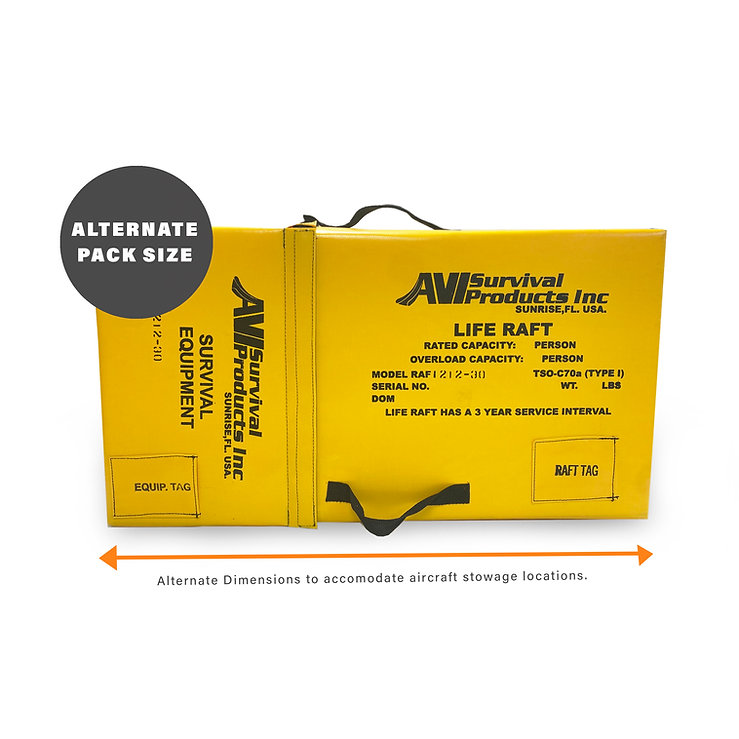 | RAF1212-311T1 | 12 Person, TSO End Pack Life Raft with FAR 135 Survival Kit + 406 ELT | 7.25X15.5X27.5 | 55 | 13-23639 |
