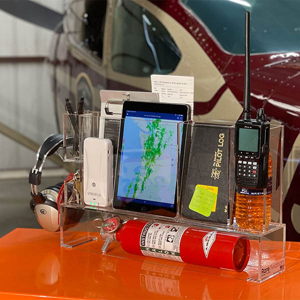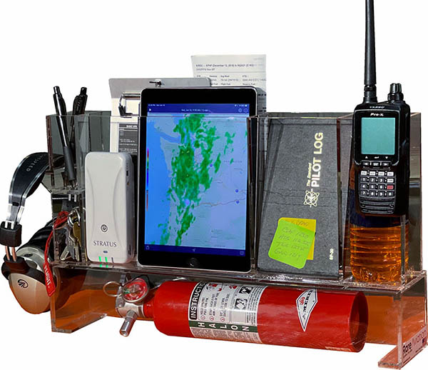 This organizer was an answer to several issues that I had in my cockpit. Since I have air conditioning, I had no drink holder or tray to put anything. This organizer provides a place for my headset, knee board, flashlight, hand held radio, and my water bottle plus several other items. Now I will not have to carry so much in my flight bag to and from the airport. Awesome product!!!!!