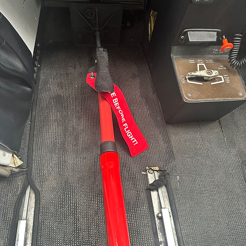 New rudder control lock for Cessna Aircraft models (see below for eligibility). The design of having it in the cabin makes it virtually impossible to forget. |