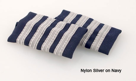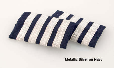 Epaulets are available with a Black or Navy base and Metallic Gold, Metallic Silver, Nylon Gold, Nylon Silver, or Nylon White stripes. Price per pair.