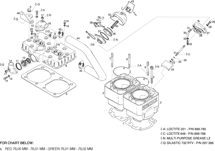 Rotax 618 ul engine cylinder, cylinder head, exhaust valve parts. Explanations of symbols and statements in part number charts: